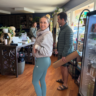 Lately, it's been particularly busy for us, and I'm known for arriving just before we start. I spend my time exchanging hugs and catching up with our fellow yogis. Then, I sit down with just enough time to apply some oils, which I then pass to Michelle at the front left corner of the deck to enjoy and share. Indeed, we do have our usual spots—Doug is typically on the other end of the deck, I'm in the middle, Jacks to my right, and Patricia and Tani behind me to the left, and so on. I digress.