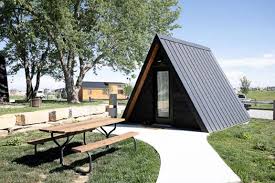 The campground was newly established, and while it will become even more appealing in the future as the landscaping matures, we could already appreciate the vision behind its design. The grounds featured stunning and striking A-frame buildings for both the office and some rentable cabins, blending modern elements with a style reminiscent of the past.